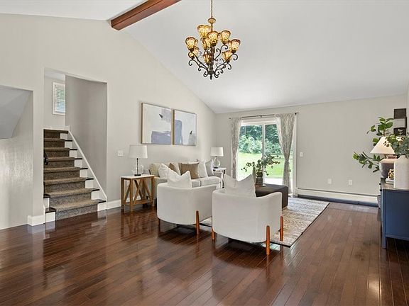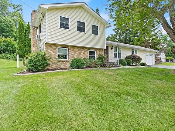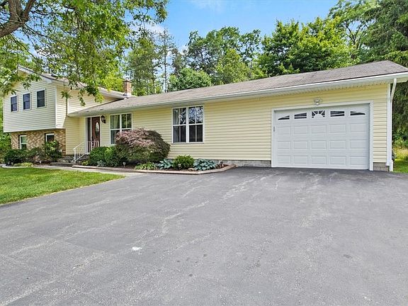 Amazing 2000+ square feet completely updated home located near Canal Woods and Ridgeway Estates on a wooded one acre lot with Spencerport Schools. The designer kitchen is a dream come true with 42" cherry cabinetry, granite countertops, large island with option to heat the top, travertine floors with built in radiant heat, soft close drawers and stainless steel appliances. The great room features hickory hardwood floors, cathedral ceilings and a sliding glass door leading to the expansive stone patio. Large family room on the lower level has a fieldstone fireplace, wood floors, laundry room & full bath with access to private backyard. Some upgrades include: New hot water heater 2024, Renovated Upstairs Bath 2020, New driveway 2017, R-21 sidewall insulation, low e argon windows and premium vinyl siding, but the list goes on and on. House sits way back from road with attached garage, beautiful backyard with spacious patio, fire pit and re-built large shed for extra storage. MUST SEE! Delayed Showings - Monday, July 8th at 5 p.m. Delayed Negotiations - Sunday, July 14th at 6 p.m. Square footage was measured by an appraiser and is 2,050.