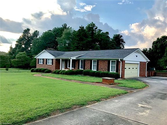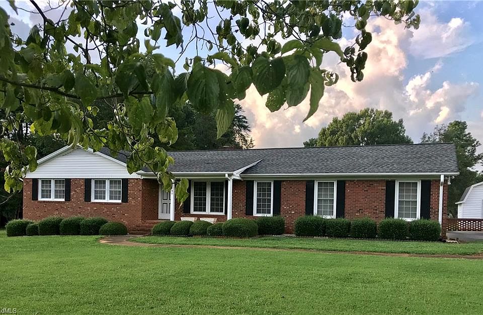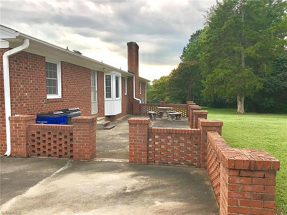 Solid BRICK ranch on 0.82 ACRE LOT tucked away in desirable SOUTHERN SCHOOL ZONE! Entry foyer opens to formal LIVING RM & cozy DEN w/ WOODSTOVE. Kitchen & dining with bright BAY WINDOW overlooking rear 41x16 BRICK courtyard. 3 bedrooms. SIDE ENTRY garage w/ 12x7 STORAGE RM. 16x14 STORAGE BLDG stays! Deep lot. Mins. to. Hwy 62, Hwy. 49, I40/85. EZ commute to Triad areas.