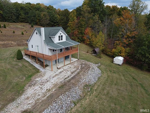 This custom-built cape cod style home offers a perfect blend of privacy and convenience, with only a short 10-minute drive to NSA Crane and a 30-minute commute to both Bloomington and Bedford. As you approach the home from the private drive, you'll be captivated by the charming curb appeal and the large south-facing deck where you can enjoy the views of the countryside. Inside, you will find the main level that welcomes you with a spacious living area, an eat-in kitchen, and two bedrooms with a full bath. Upstairs, the crown jewel of this home is the master suite, which features a spacious walk-in closet and an ensuite bathroom complete with dual vanities, a jetted tub, and a rain shower. The walkout basement is constructed with ICF (Insulating Concrete Form) for energy efficiency and durability. The basement includes a large bonus room with a wood burning stove, a laundry room bathroom combo and a conditioned garage that could easily be transformed into 450 square feet of additional living space if desired.