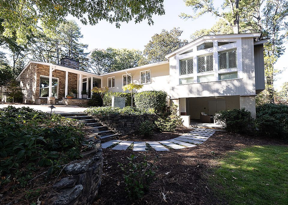 Designed by noted Raleigh architect Arthur McKimmon and built in 1956 as his personal  residence, this architecturally significant house is for sale and must be seen to fully  appreciate all that it offers. A private retreat located in one of Raleigh’s most desirable  neighborhoods inside the beltline. A perfect family home that is, at the same time,  excellent for entertaining. The living room is large and welcoming with a gas fireplace  and sliding doors that take you to the expansive bluestone patio and private landscaped rear  yard. The spacious kitchen with beautiful honed granite countertops, new appliances  and beautifully crafted mahogany cabinets is a natural gathering place and opens up to a  comfortable sunroom to have your morning coffee. A handsome powder room is tucked  off the kitchen and side entry. The primary bedroom is a sanctuary with a sitting room,  natural light, and gorgeous views. The primary bathroom is spacious with soaking tub  and shower, his and her separate areas, as well as huge his and her closets. Second  and third bedrooms on main level are spacious and light filled with a shared full bath that still has the original built in clothes hamper. Downstairs has a large den and bedroom with  ensuite bathroom, as well as the perfect wine room and walkout covered patio.  Convenient access to the outdoors is provided bv patios on each level. But, the best  feature is the outdoor room, just steps away from  the living room and adjacent patio which  was added in 2020. Featuring a masonry wood-burning fireplace, copper roof, and blue  stone hearth and knee-wall surround, it is the most perfect spot to enjoy the fantastic  landscape and the private paradise. (Features tankless hot water, hardwoods and  Italian tile and terrazzo tile in entry.).