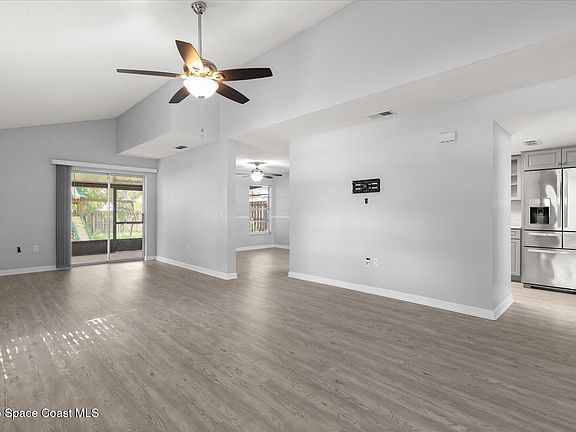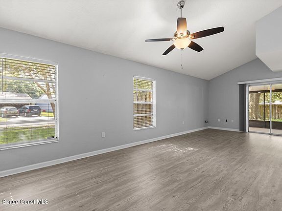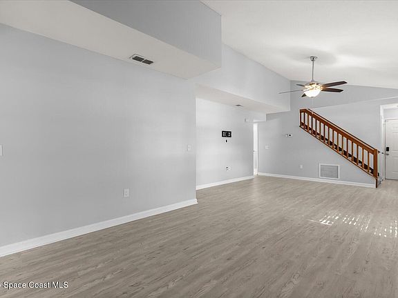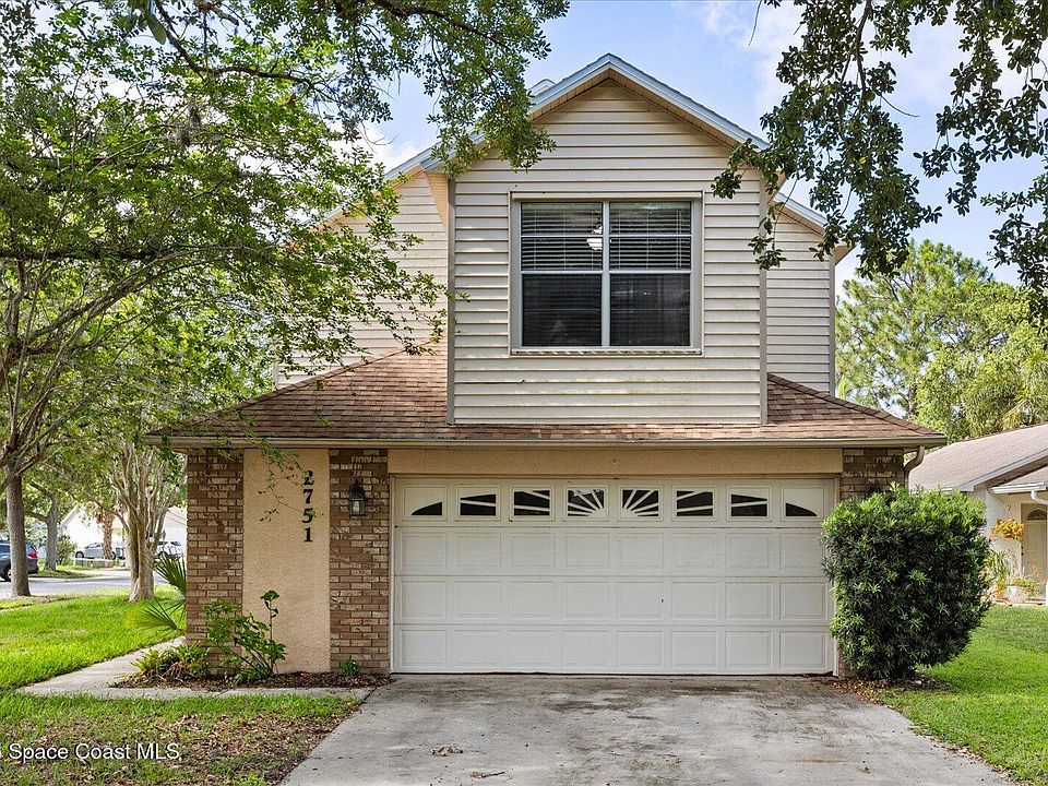 New ROOF (2020) This charming two-story home sits on a quiet, tree-lined street and features a brick-accented exterior, spacious driveway, and two-car garage. Inside, enjoy an open-concept layout with a modern kitchen featuring quartz countertops, soft close doors, pull out spice rack, and a large pantry. Beautiful wood laminate covers the downstairs. Upstairs offers a private primary suite with double vanities & his & her walk-in closets, two additional bedrooms, and two full baths. The screened patio leads to a fenced backyard with mature trees and a playset—great for relaxing or entertaining. This established neighborhood offers a community pool and tennis courts. Conveniently located near local beaches, Kennedy Space Center, Port Canaveral, Space X, Blue Origin, NASA, Cocoa Village, and only 30 minutes to Orlando International Airport.