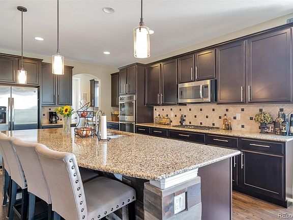 This must see gorgeous house is an entertainers dream home. So many upgrades including professionally finished basement with kitchenette (which has upgraded quartz and granite countertops), a wine cellar, two bedrooms and a full bathroom. Awesome back yard with large covered deck, stamped concrete patio with built in gas fire pit, and bocce ball court, and hot tub for outdoor enjoyment. Main level boasts large open concept with real wood flooring, upgraded wrought iron balusters, and an amazing entertainers kitchen with oversized granite island. Off the kitchen is a butlers pantry/desk area that leads to a walk in pantry. This house is ready for you to enjoy and entertain, no corners were cut in the design and finishes of this gorgeous home. The hot tub is included. The neighborhood has walking paths, playgrounds, and two pools included with HOA, and is within walking distance to the elementary school. Come see today and make this place your home!