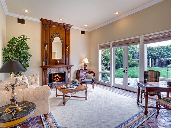 A Majestic Estate inside Stoneridge. A spacious two-story floor plan spans over 4500 square feet, 5 BR's and 4.5 Baths. Stunning wood and brick floors grace much of the downstairs. There is a formal living room with a dramatic fireplace and a formal dining room with lots of natural light. The extended family room is anchored by a soaring rustic brick fireplace.The gourmet Chef's kitchen has granite counters, Viking and Bosch stainless steel appliances, a Sub Zero refrigerator, walk-in pantry, lots of cabinetry and a casual dining alcove. Center prep island has 6 burner gas cook top and vegetable sink. Amenities in this home include a neutral palette of custom paint, custom window coverings, high ceilings, crown molding and recessed lighting. Each bedroom offers both luxury and charm. The Master has both stunning views, an inviting fireplace, a large master bath with dual vanities, spa tub, separate shower and a well-appointed walk-in closet.The expansive backyard is designed for entertaining and an active lifestyle, highlighted by a custom designed pool surrounded by lush landscaping, a covered dining area with a built-in fireplace. There are amenities galore plus a three car garage and plenty of extra parking options. Perfect Cul-De-Sac location.
