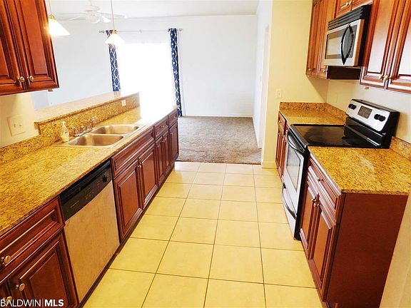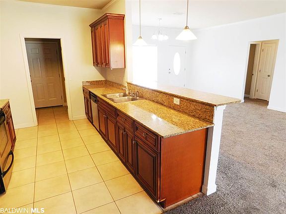 Great home in Charmont Subdivision. Features include large open living area, split bedroom floor plan, granite counters, stainless steel appliances, double garage, large laundry room. Master bathroom features dual vanity, shower/tub combo with glass door, large master closet, and additional linen closet. The subdivision features nice community pool, pond, gazebo, and ball field. Backyard fenced on two sides. Great location for quick access to I-10 to commute to Mobile or Pensacola!