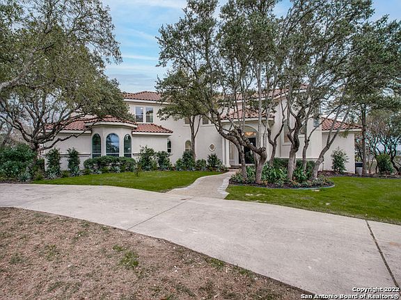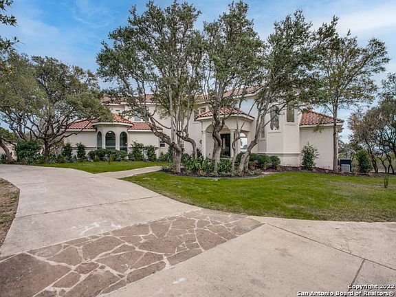 Bring a piece of the Hill country home with this magnificent privately gated estate situated on 3 1/2 acres of beautifully wooded oak trees in the sought-after Highlands Ranch subdivision. Conveniently located off IH-10, minutes from La Cantera and The Rim, this home boasts breathtaking hill country views sitting at one of highest elevations of the neighborhood. This newly remodeled luxury residence is the perfect private entertaining oasis with its poolside hilltop views. The property features 5 bedrooms and 5 full baths all beautifully decorated with stunning combinations of granite, marble, and dolomite. Escape into the master retreat and enjoy the spa like bathroom with its picturesque view from the soaking tub. A cook's dream with a well-appointed kitchen with two large islands, 5 burner Jennair downdraft cooktop and two generous sinks. For entertaining and holidays take advantage of the bonus kitchen complete with its own additional oven, cooktop, and sink. Your guests will enjoy gathering at the centrally located bar or around one of the two floor to ceiling fireplaces on cooler nights. A separate upstairs wing showcases a fifth Bedroom/library/gym/ office offering privacy from the rest of the house and features its own balcony with additional breathtaking views. On the other side of the house a separate staircase leads to the upstairs accommodations which include a game room/den, three bedrooms and two additional bathrooms. All three bedrooms feature custom built-in desks and bookshelves. This incredible home has too many features to mention. It's a must see!