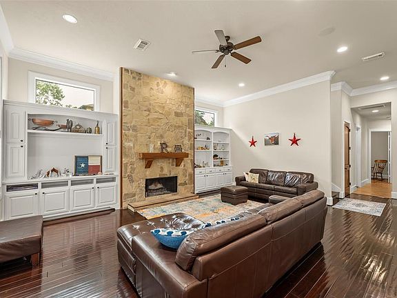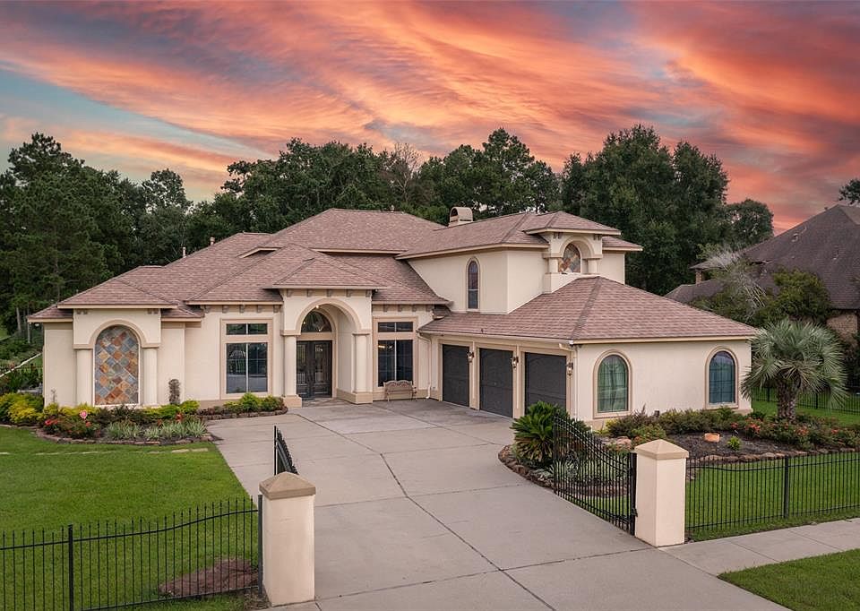 Welcome to this stunning Mediterranean House! inspired retreat in Bender's Landing Estates. This 5-bed, 5-bath home boasts a gourmet kitchen w sleek granite countertops, double ovens, large island with prep sink, stainless steel appliances and custom wine grotto. Spacious Game Room/Media Room, Family Room, Private Study, Formal Living/Dinning areas. Additional premium features include plantation cabinetry Shutters, automatic shades, designer light fixtures, Wood floors & custom cabinetry. The laundry room features a utility sink and gas/electric dryer connections. The 3-car garage includes its own HVAC unit and 220v outlet. Situated on over an acre, this home offers privacy and luxury. The backyard is private and perfect for entertaining w the Community Clubhouse a few minutes distance. Low tax rate and zoned to highly acclaimed CISD. Located near Shopping and dinning. Experience the peaceful oasis of Bender's Landing Estates. Don't miss this opportunity to own this gorgeous property!