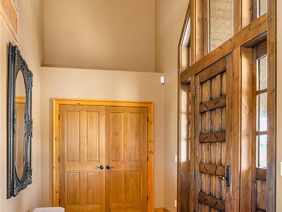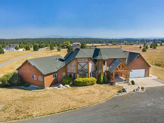 From the moment you walk through the 3" solid Hickory front door, you will be wowed by this breathtaking craftsman home with a country flair and custom features throughout. Log beams and log stairs guide you from floor to floor. This home boasts highly efficient Montana Quartz rock fireplaces with catalytic convertor & custom vented circulation system that heats the entire home. Vaulted ceilings lead to an open loft with a bedroom, bathroom and family room area. Large kitchen would make the best chef jealous with a Viking range, duel ovens, heating drawer, oversized refrigerator, hammered copper sink, large pantry and island with prep sink. Granite counters & the large eating bar is solid cherry wood. Main floor master bedroom is enormous with custom build walk-in closet. Master bathroom has double sinks, a heated jetted bathtub & shower with 5 spray heads. The finished daylight basement sports 2 additional bedrooms, family room, bathroom, theater, workout room and wine cellar. Additional 10 acres available.