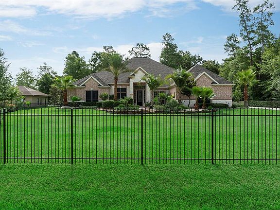 If you want it all, THIS is your home! MAGNIFICENT 1 STORY on a one acre lot fully fenced with a GATED ENTRY! You will not believe all the space this home has to offer! Chef's kitchen with accent island, decorative lighting, LOADS of cabinetry for storage, breakfast bar, and Professional stainless appliances including 48" gas range, 17" griddle, warming drawer, OVERSIZED built-in refrigerator, & more! All bedrooms with wood floors and en-suite bathrooms with GRANITE counters! Gameroom off of kitchen area! BONUS room can be a 5th bedroom, man cave, exercise room, etc. with direct double door access to the back patio! EXPANSIVE COVERED BACK PATIO with fireplace! NEW high effect Lennox AC Systems (2019), 3+ car garage with storage closet, WHOLE HOUSE GENERATOR, mosquito system, security cameras & monitor, plumbed for future pool, pool bath, and outdoor kitchen! NO FLOODING! Access to neighborhood clubhouse, pool, exercise facility, and sport courts/fields!