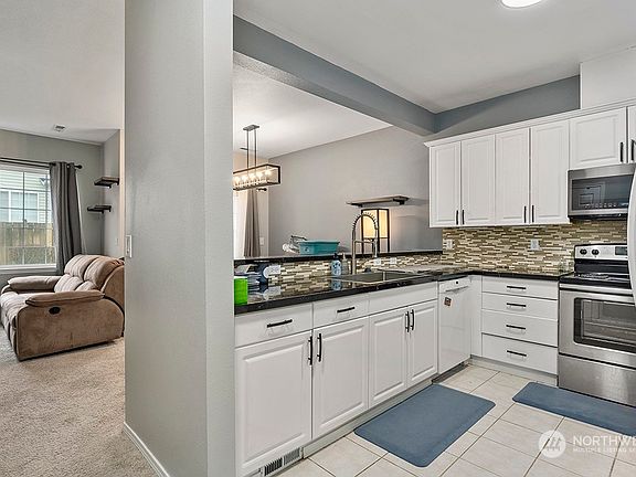 Welcome Home! This Beautiful townhouse features 2 bed 2.5 bath and is in a great location, the highly desirable Foxtail Farm Townhomes! Walking distance to shopping, dining, recreation. Close proximity to highway and freeway for commuting. 15 minutes to Tacoma and 30ish minutes to Seattle or JBLM.Some updates include stunning kitchen with white cabinets, newer sink, countertops, stove and microwave. First floor painted just a little over a year ago, updated lighting, newer carpet, and roof replaced 2020. Peaceful quiet area with back patio perfect for relaxing or entertaining. Need more icing on the cake? 2 primary suites upstairs on opposite ends of the home. Don’t miss this opportunity for your new home!