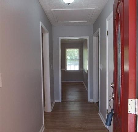 Ranch home on private over 1/2 acre wooded lot. Rocking chair front porch. Fresh grey paint through-out interior! HUGE great room opens to additional over sized room perfect for rec room or just additional living space! Large laundry room w/walk-in storage closet. Master w/private bath. Deck overlooks wooded backyard w/storage building. Lease includes trash service. Pets negotiable with $500 non-refundable pet deposit.