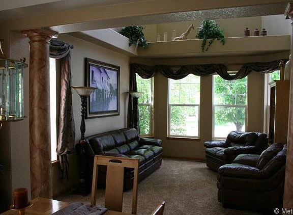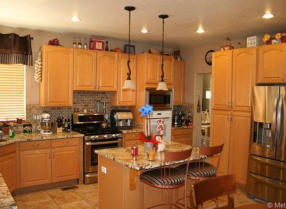 Electric awnings, stamped patio, cam lighting, custom closets, built in bookcase, granite counters, jetted tub, painted/coated garage floors, gas stove, gas oven, and conventional oven. Office on main level = 4th bedroom. County records show 3 bedrooms.