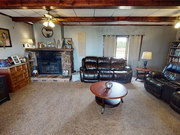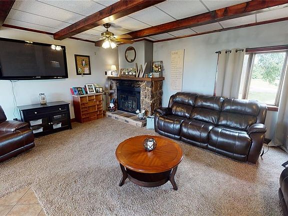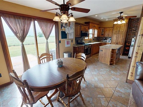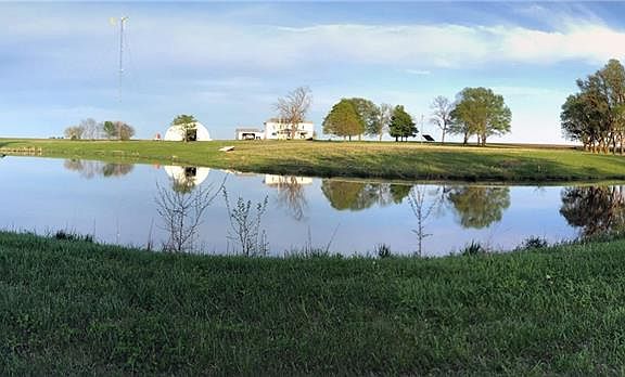 10 Acres+/-, stocked 2 Acre pond, and full country views. Property is surrounded on 3 sides by farm ground that creates secluded privacy and spectacular views. This unique property offers amazing features that have lifetime cost saving benefits; including a top of the line personal power producing windmill, solar panel and geothermal. 4 bedrooms, 3.5 baths. Home has lots of space, formal dining room with French doors, 3 fireplaces, kitchen has all custom made cabinets, granite with spacious island, lots of cabinet space and new appliances. Home faces out to look over beautiful pond. 2 car attached garage. A 40'x80' square foot structure allows lots of extra room for toys with second level for extra storage. This is a piece of beautiful property; walk your land and fish from your own private spot!