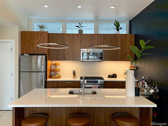 LOCATION!!! This modern one-bedroom condo is ideally located in Jefferson Park, within minutes of LoHi, RiNo, Downtown, LoDo, sports stadiums, and more! Unit is north facing, and has an open, airy feel with plenty of natural light. The kitchen features quartz countertops, stainless steel appliances, gas range, decorative backsplash, and a large kitchen island. A big 100 sq. ft. balcony flows off of the dining/living room area, and is a great spot to entertain and enjoy the outdoors! The balcony even has a gas hook up for a grill. The spacious bedroom has a large window, and walk-in closet, and connects to a large full bathroom. For reference, the bed featured in the photos is a king-sized bed. Washer and dryer are full-sized, stackable units, and are located in a closet along the hallway as you enter the condo. Bonus, an energy efficient tankless water heater is also included in the unit offering endless hot water and reduced utility bills!! Furthermore, the HOA fee includes high speed internet for homeowners! Condo has been immaculately maintained, and in like-new condition. Surrounded by fantastic restaurants, bars, coffee shops, public transportation...a great place to call home!