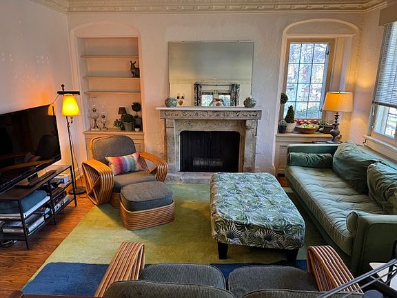 Modern updatesOld world characterStone fireplaceQuiet tree-lined streetThree large bedroomsDesigner area rugsLeaded windows