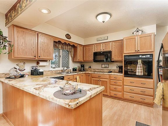 Great oak kitchen space w/breakfast table area. Formal dining/office area. Master has private bath. Spacious family room w/3 windows and gas stove. Lots of storage. Covered back patio leads into private backyard with waterfall, bird baths, garden area, tree fort and more. New roof & gutters 2017. New furnace, A/C, & Humidifier 2016. New hot water heater 2018. New rented water softener (Culligan-$18/month) 2019. Well for home & UGSP. Double attached garage. RV/Extra parking. 2 sheds (14x18 & 24x12). Fully fenced yard front & back.