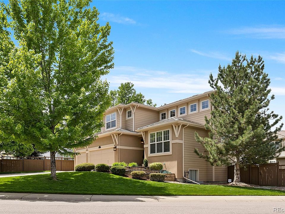 Impressive from the great curb appeal to EVERY detail in this 4-bedroom, 4-bathroom home in the highly sought-after Highlands Ranch Golf Club neighborhood and situated on a coveted corner lot. You're greeted w/ the warm ambiance of the new tile in the entrance and kitchen and beautiful wood floors that flow throughout the rest of the main level and an abundant amount of natural light from the vaulted ceilings. The open-concept floor plan allows for seamless movement between the living, dining, and kitchen areas, creating a wonderful space for entertaining. The main floor features a spacious formal living room, home office, dining room, kitchen, family room, powder room, and laundry room. The kitchen is the heart of this home which opens into the living room with a cozy gas fireplace and built-in cabinet. It has been updated w/ newly painted cabinets, black ss appliances, granite countertops, and a convenient center island and desk area. Upstairs the spacious primary suite is complete w/ an en-suite bathroom and features a soaking tub, separate walk-in shower, dual vanities, and a generous walk-in closet. The spacious second bedroom has its own ¾ bath. The additional two bedrooms share a full jack-and-jill bathroom. The large unfinished basement provides a blank canvas and could be tailored to suit your needs. One of the standout features of this home is its private yard, where you can unwind and enjoy the outdoors. The corner lot location provides an added level of privacy, allowing you to fully embrace the tranquility of the neighborhood. Lastly, with the 3-car garage and oversized driveway there is plenty of room for everyone! This home is conveniently located near C-470, recreation centers, parks, trails, dining, shopping, and much more. Don’t miss out on this meticulous, true pride of ownership! This home is in true move-in condition & ready for your family!