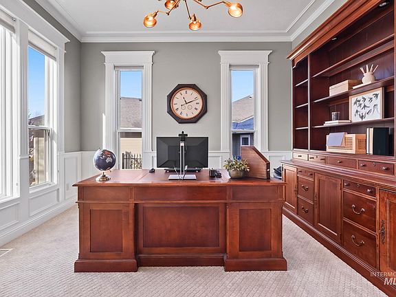 Welcome to Your Dream Home- where luxury meets privacy and convenience, offering unparalleled comfort and timeless elegance in the heart of Southwest Boise. This stunning 4,600 sq. ft. home boasts 6 bedrooms, 5 full bathrooms, and a dedicated office. From the moment you enter, the impressive foyer welcomes you into a spacious family room with hardwood flooring, custom fireplace, soaring ceilings, openness and sophistication. The seamless flow into the gourmet kitchen reveals granite countertops, top-of-the-line Bosch stainless steel appliances, and custom cabinetry. The luxurious master bedroom suite is a true sanctuary, featuring breathtaking views from the private patio deck. Downstairs, the finished walkout basement offers even more living space, including a bedroom, full bath, second kitchen, and cozy living room—an entertainer’s paradise. Outside, the meticulously landscaped 1/3-acre lot is adorned with mature trees, offering stunning views and the ultimate privacy with no rear neighbors. Don't miss out!