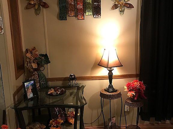 This is ready to move in 2002 Spirit well maintained home ! Iam second owner lived here 4 years I just put on a new roof built a new deck new flooring new vanity updated paint and trim ! Comes fully furnished stove fridge microwave dishwasher garbage disposal washer dryer about 3 years old kitchen table 4 chairs about a year old 2 bar stools lamps 2 stone and glass tables coffee table curtains blinds decorations lazyboy leather recliner matching couch with pillows all in great shape window treatments decorations bbq gas grill garden tub shower and glass doors fireplace with electric heat blower and flames 2 curio cabinets glass and wood memory table ac heat pump unit a must see motivated seller ! Can leave in the park or can be moved as well no property taxes just personal which runs 134.00 a year utilities are very reasonable all electric around 120.00 - republic services trash 38 .00 every three months ! Gated community swimming pool tornado shelter event planning room library lighted trails etc . If leaving in the park after purchase rent is $340 a month includes yard Maintainence trees in front trimmed also playground park and mailbox with key basketball court dog park etc