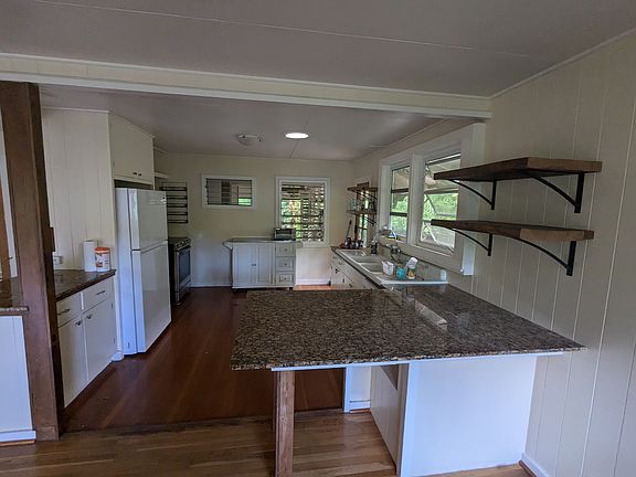 Single home duplex, perfect for multi-generation Families: - Both top and bottom floors have their own kitchen, living room, outdoor space and lanai. - 4 Bedrooms + 1 Extra Office/Guest bedroom. - Covered parking for 2 cars + Storage Area - Large solar system and solar water system = minimal HECO bill. - Laundry + Workshop area outside with ample space and storage. Surrounded by forest, stream and gardens. Seeking community-minded 'ohana or responsible couple(s) involved in non-profit/education/aina-based work and values. Solid community/neighbors and stream/hiking trails adjacent. No-Smoking allowed. Long term lease preferred. Water + electricity paid separately. Pets negotiable. Tenants are responsible for maintaining garden areas.