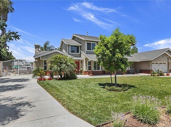 NO MELLO ROOS- NO HOA FEES- LOW TAXES. Location, Opportunity and Motivated Seller in one place. almost 1/2 acre on a Cul de sac.. fully landscaped,TWO RV Driveways.. one on each side the property..Over sized 3 Car Garage, spacious breezeway..Beautiful updated 4 bedrooms (3 up 1 down) 3 Full Baths. Beautiful New double door entry, open floor plan, Two fireplaces one in living room and one in Family room.. Kitchen with granite counters and breakfast bar overlooking the family room and the extraordinary rear yard, deep roll out draws for pots and pans and counter top with a pot filler for convenience when cooking, recessed lighting, tile floors... Downstairs en suite with walk in closet, Formal Dining Room, plus a separate laundry room.. Upstairs a Large Master suite, walk in closet, Master bath double sinks, separate shower and soaking tub, all good size rooms. Wains coating, Ceiling fans, Move in Ready.. New AC unit, new stucco, New windows..New circuit breakers. So many extras. Large Covered Patio ... Rear yard is fully landscaped, Variety of fruit trees, gardens. Room for: fun, entertaining, lap pool, basket ball court what ever your dream is you can make it come alive here!!!! Bring your toys TWO RV Driveways one on each end of the property..RV parking equipped with dump station,water and electric. NO MELLO ROOS- NO HOA FEES ..Turnkey Come See you wont be disappointed.! All offers considered !