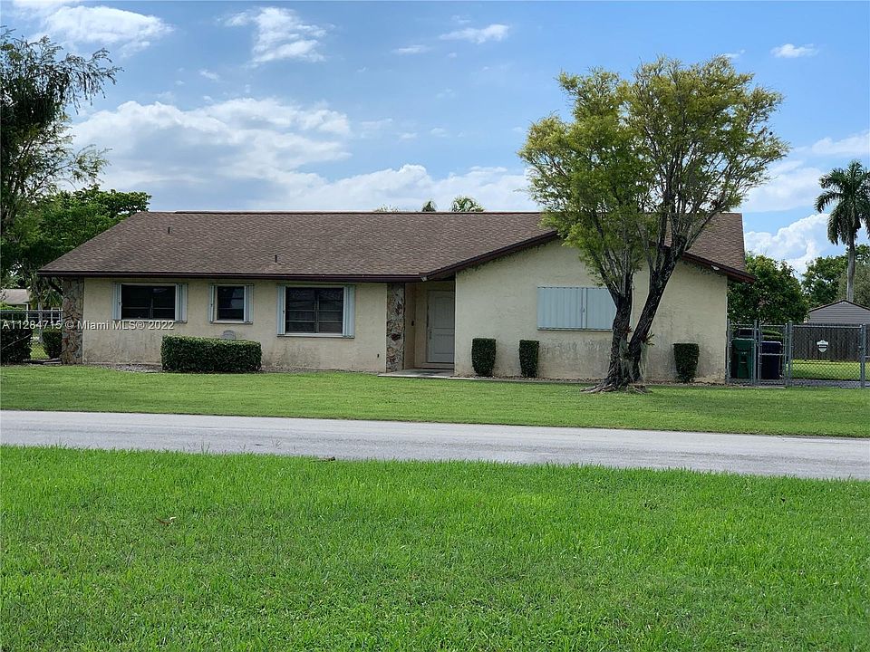 Fantastic Opportunity To Own! 3 bedroom/ 2 bathroom/ 2 car garage on 20,720 Sq.Ft over sized corner lot. With plenty of space to add a pool and space for a boat/camper. Property features tile throughout except for the guest rooms, which have carpet. Master bedroom has a bonus office/sitting area. Wood Kitchen cabinets. 2019 roof, 2018 A/C unit outside & 2021 inside unit, 2021 water softener. Hurricane shutters (accordion) for all windows and sliding glass doors. Hurricane entry door. Property is located near Park, High School and Elementary/Middle School.