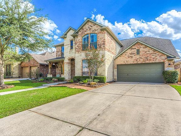 Natural light flows throughout this open concept design. Beautiful wood floors leads you through the home. Spacious family room includes high ceilings, corner tile fireplace & is pre-wired for surround sound. Gourmet kitchen features granite countertops, built-in Stainless Steel appliances, breakfast area on the island & an additional dining area. Elegant formal dining room is perfect for hosting dinner parties. Private home office is located at the front of the home. The luxurious master suite includes dual vanities, large soaking tub, separate shower & huge walk-in closet. Upstairs game room is great for game nights! A built-in desk upstairs is perfect for homework nights. Media room is ready for movie nights & includes sound-proof walls & pre-wired for surround sound. Outside, a large covered patio includes an expansive outdoor kitchen, pre-wired for surround sound. Add your firepit and enjoy! Located minutes from Grand Parkway, providing a quick commute to major thoroughfares.