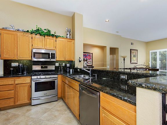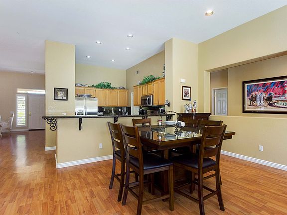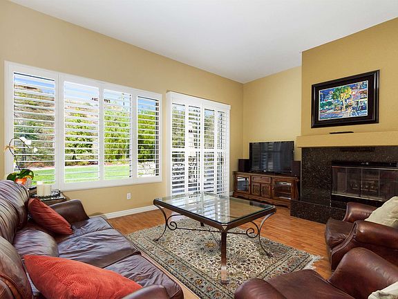 Captivating is the word! This move-in ready home is perfect for a family ready to create memories. Luxury is what this home has to offer with 2,176 sq. ft. of attractive single-story living space. The gorgeous entryway welcomes you, opening up into a formal living/dining room. Just beyond is a large, open-concept family room with a gas fireplace, laminated wood flooring and soaring vaulted ceilings. The beautiful kitchen, perfect for relaxing with family and friends, offers granite counter-tops and back-splash, entertainers' wrap-around bar, stainless steel appliances, recessed lighting and abundant cabinet space. The private master suite highlights a picturesque view of the backyard, with the en suite boasting a double vanity, large shower and separate soaking tub as well as an over-sized walk-in closet. You will also find 3 additional bedrooms and a bath (also with dual vanities) on the other side of the home. This cozy community has low taxes, no Mello Roos, and low HOA with amenities including two pools, spas, tennis courts, fitness center, clubhouse, basketball courts, and little league baseball. The Luiseño K-8 School is located within the community. Horsethief Canyon is conveniently located close to shopping and freeways. Come & see this great home and you will be captivated!