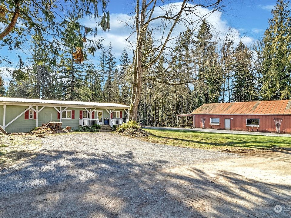 BEAUTIFUL property on 6.42 acres! Build your DREAM home while you live in the manufactured home. Home has 2 bedrooms, master w/LARGE walk-in-closet, Light & bright kitchen has all new appliances, eating bar & new flooring that extends to the front room & bath. Fresh paint throughout. New heat pump. 4 bedrm septic design has been completed. HUGE barn with loft area & overhead lift 42 x 60. Bring your builder & design your plans today! Country setting yet 3 minutes to I-5. Green home on the property has 1 bed, 1 bath, kitchen area, once rehabbed it could bring in extra income or use for an office. RV Hook up on property. Home will need a well OR hook up to waterline coming down in Dec. Follow directionals down until you see red barn and home.