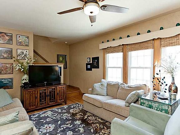 Exquisite 3 bedroom, 1 full bath with many modern updates! Great room offers daylight windows and well maintain hard wood flooring that looks like new! Formal dining room features same hardwood flooring and antique chandelier. Showcasing new countertops and sink, beautiful cabinetry, and stainless steel appliances-this kitchen is sure to please & comes equipped with all appliances! Master bedroom has plush carpet and spacious closet. 2 additional bedrooms and up-to-date full bath with tub/shower with glass door, artistic sink and molding, and tile flooring complete the second level. Laundry room is located in the lower level and washer/dryer stay! Well maintained and well landscaped backyard. Patio area on the back of the home. Oversized 2-stall garage with electricity. Upgrades includes: windows on the main floor and upstairs were replaced in 2008 and are double hung, newer AC, furnace, and roof, new concrete driveway!