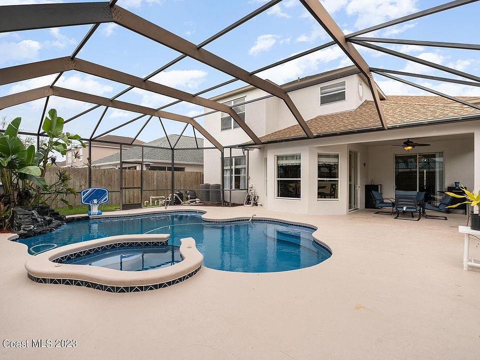 Beautiful pool home in sought after Westbrooke Community in West Melbourne. 4 bedrooms, 2.5 baths & 3 car garage w/ spacious inground & screened swimming pool with a fully fenced privacy fenced backyard. Home includes a formal living & dining room with slider door to covered lanai, Large eat-in kitchen with raised panel maple cabinets, Corian countertops, & breakfast bar. Stainless steel appliances included. Breakfast nook offers a bay window overlooking the pool area. Enjoy a large family room with tile flooring, a half bath downstairs along with indoor laundry room. Tile & Laminate flooring throughout, no carpet. The upstairs features a large Master suite with tray ceiling, walk-in closet, double sinks, walk-in shower & garden tub. Freshly painted exterior & new roof in 2018.