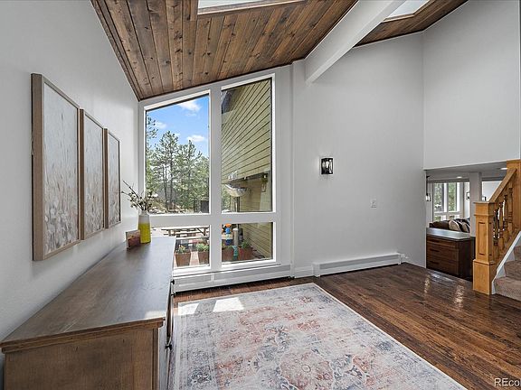 Welcome to this magnificent home, epitomizing contemporary and idyllic mountain living. This spectacular residence features a spacious 6-bedroom 5-bathroom layout, spanning 4808 beautifully updated square feet. The front entrance, with high-ceilinged foyer, establishes the spacious open floorplan that stretches out before you. This level's contemporary finishes, from the living area with updated fireplace and high ceilings to the gourmet kitchen, equipped with high-end appliances and sleek concrete counters invite entertainment and culinary creativity. The main floor showcases two comfortable bedrooms with a 3/4 shared bath, a mudroom with built-in lockers, an updated powder room, and a dedicated laundry space. The deck has unobstructed views of Elk Meadow and Bergen Peak and the wildlife that travels through there daily. Venture upstairs to the loft, brilliantly positioned between the bedroom with an ensuite bath and the impressive primary suite. This space is a sanctuary of relaxation, complete with a gorgeously remodeled bathroom and two large walk-in closets. Descend to the basement and you will find an amazing bar featuring marble countertops, two beverage fridges, an ice maker, and a dishwasher. The great room has an updated fireplace, a perfect spot for relaxing or game night. Also on this level are two additional bedrooms complete with a full bath. From here, step out onto the lower deck to enjoy Colorado's beautiful weather. Outside, the fenced-in yard with astroturf is the perfect place for outdoor activities A speaker system is installed throughout the house and yard. This exceptional home in the heart of Evergreen, Colorado offers comfort, luxury, and a stunning mountain-view living experience like no other. The updated finishes, outstanding amenities, and enchanting views make this one a true standout and an opportunity not to miss. Assumable VA loan available.