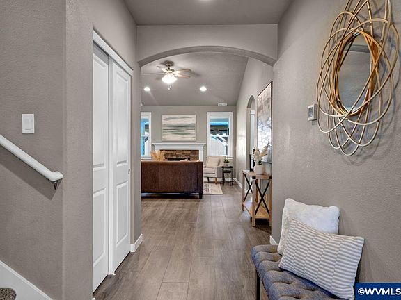 Open-concept layout designed for comfort and style. The gourmet kitchen features quartz countertops, soft-close cabinetry, huge pantry, and a large island with bar seating, perfect for entertaining. The inviting living room is centered around a cozy gas fireplace. Primary suite is conveniently located on the main level and includes a beautifully appointed full bath & access to your covered patio. The versatile fourth bedroom w/ a full bath offers endless possibilities, guest suite, office, or flex space. Situated on one of the largest lots in the neighborhood at .23 acres, this home provides exceptional outdoor living spaces with fruit trees and raised garden beds. Triple car garage is extra deep with additional storage area. With too many upgrades to list, this North Albany gem combines quality craftsmanship, thoughtful design, and an unbeatable location!