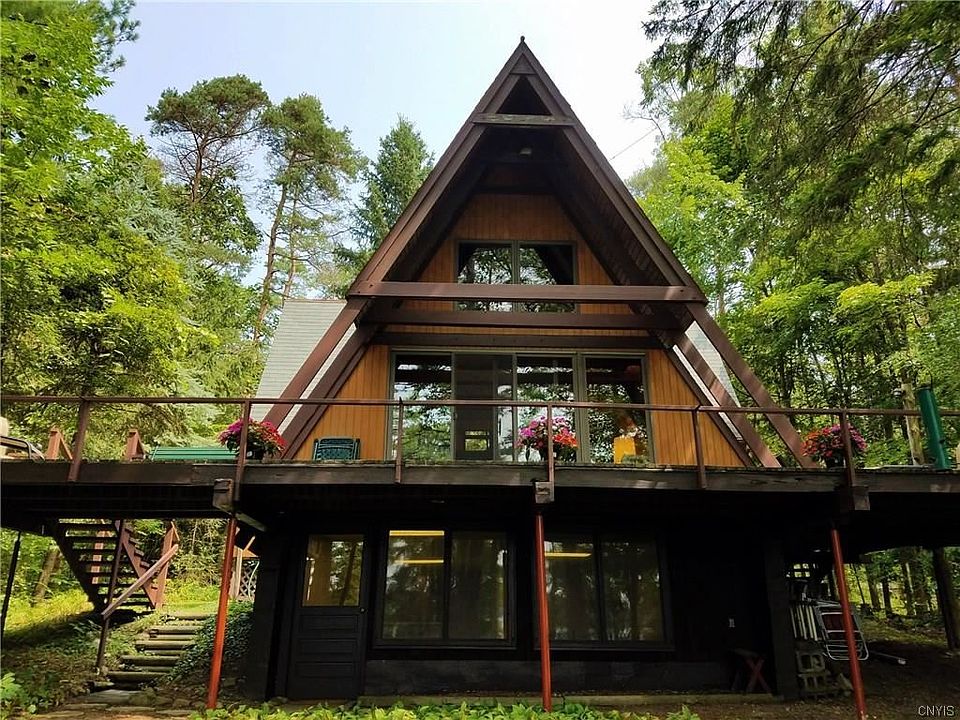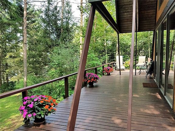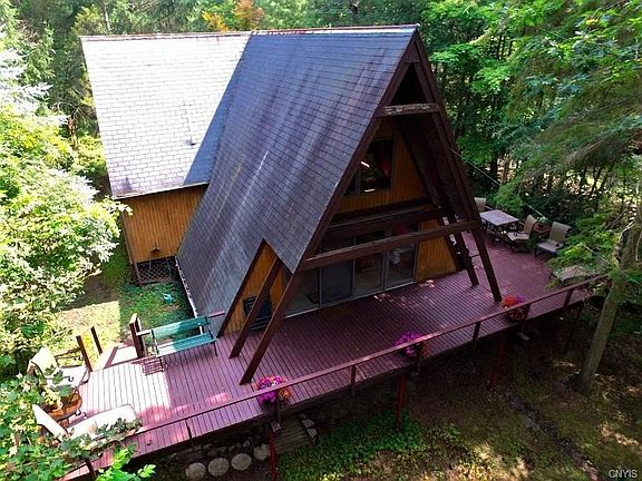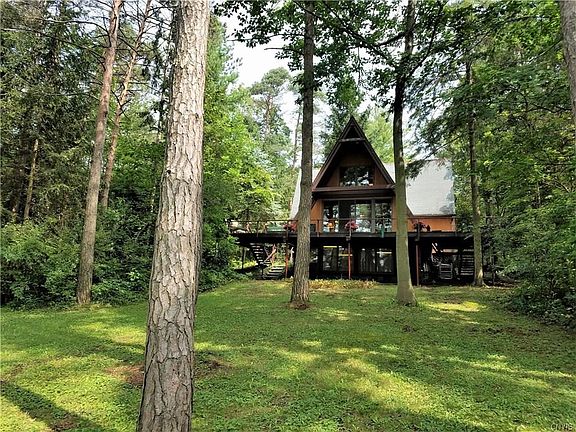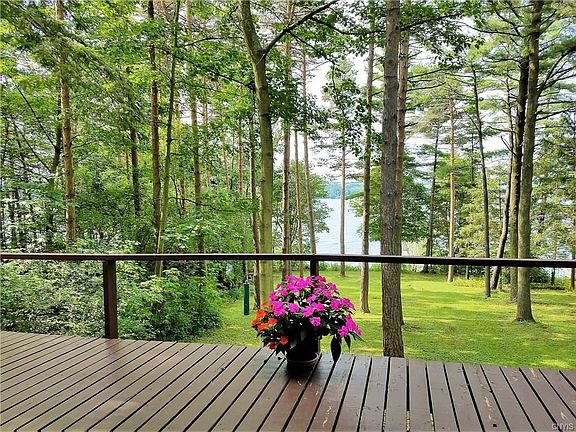 This home has never been available for sale until now. Owned by one family with 85 feet of Skaneateles lakefront featuring it's own point with room for chairs, kayaks, and more! The views will leave you breathless. Beautifully treed lot with a gentle slope to the water. Gorgeous wrap around deck and walk out lower level. First floor master with full bath and room to sleep 6 in the 2nd floor loft. Something rarely seen in a camp, a washer and dryer! Also has a shed with electricity to store all of your outdoor items out of the way.