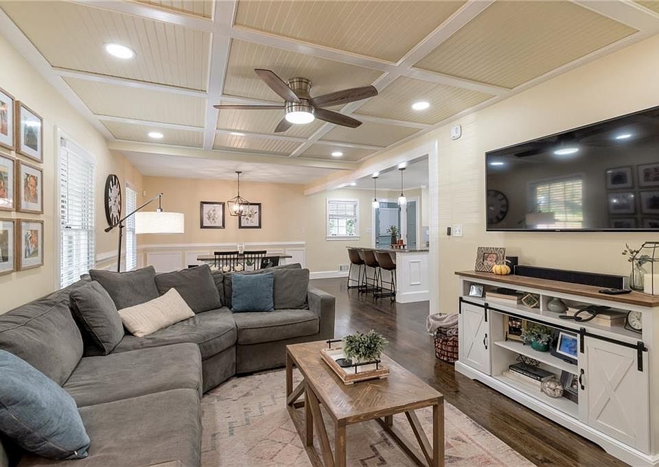Embark on a journey through this home's captivating interior spaces, each thoughtfully designed to blend the allure of a bygone era with the comfort of modern luxury. As you step inside, gleaming hardwood floors lead your way, creating a warm and welcoming ambiance throughout. The heart of the home, a chef's dream kitchen, stands as a shining example of elegance, boasting stainless appliances, a stylish tile backsplash, and the subtle glow of pendant lights that enhance both form and function. Within these walls, intricate designer crown molding and coffered ceilings come together, adding a touch of depth and character to every room. A cozy keeping room, centered around an authentic wood-burning fireplace, beckons you to experience the essence of heartwarming comfort. The master bath transforms into a spa-like haven with its opulent marble floors, inviting you to unwind in absolute luxury. Two additional bedrooms, each offering its unique charm and character, provide comfortable sanctuaries for relaxation and personalization. The remodeled bathroom space effortlessly combines style and functionality, ensuring a luxurious and rejuvenating experience. Venturing down to the spacious finished basement, you'll discover a realm of endless possibilities. The custom built-ins, an extra bedroom, and a fully equipped bathroom await your creativity and indulgence. As you step outside, the expansive backyard, secured by a freshly updated privacy fence, reveals itself as a lush retreat. It's a place where relaxation and outdoor enjoyment harmonize perfectly, and there's room for all. A delightful screened-in porch invites you to escape the elements while staying close to nature. A spacious deck beckons for al fresco dining and entertaining, adding a touch of outdoor charm. In essence, this home offers an exquisite blend of classic charm and modern luxury, ensuring that every space within this residence embodies unmatched attention to detail and sophistication. It's not just a house; it's a lifestyle waiting to be embraced. Don't let this remarkable opportunity pass you by; this home eagerly awaits your personal discovery.