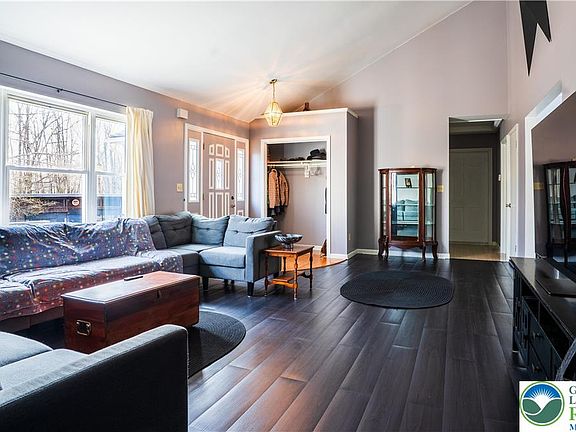 Lovely gem hidden back a private drive on 3+ acres with a large yard. This property borders hundreds of acres of State game lands perfect for privacy, hunting and wildlife watching. Beautiful outdoor space with established garden area and fruit trees. Also in the yard you will find a horseshoe pit and a sweet tree house that with a little love can be enjoyed for years. This home was built by owner and lovely taken care of after his passing. Too much for owner to handle by herself so she is sadly selling to a new owner she hopes will love it as much as they have. The interior is very spacious with large rooms. Vaulted ceiling in foyer and great room, a large kitchen with plenty of space cooks will love, with a dining room to enjoy plenty of family conversations around the table. The first floor rounds out with the master bedroom, bath and large walk in closet and 2nd bedroom and bath. Tucked in the back is a large utility, laundry room with access to spacious 2 car garage with plenty of work area and storage. The 2nd floor has access to large attic space and a bonus area to be used as a 3rd bedroom, in-law suite, rec/gym area, media room or office choices are endless. You will be amazed how much space is in this home. Added to all this is a full basement with a backup coal stove with all coal included. This space offers even more opportunities to make it what you want. Don't miss your opportunity to give this home a little love and make it all you want it to be.