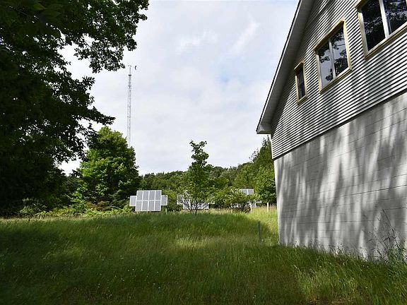 Secluded & scenic on the ridge between Crystal Lk and Big Platte Lk this property was once farm & orchards. It offers amazing potential for farming, vineyard (slopes So.) & recreational options, etc. All details refer to the main house. Detached 3 stall garage has a 1,687', 2 bed, 1 ba, living space on second floor, & 3/4 bath in garage. Electrical, plumbing, trim & more have not been completely finished in some areas. This is a unique property; some items are more than substantial in construction/design & some are simplistic. The north line has some seasonal views of Lk Mi, Sleeping Bear, Big Platte, etc. but trees need to be cleared to benefit the view. There is a total of 4 garage stalls, one w/12' door. ARE110 Wind generator/solar, fully operational on property. Wood trim inside is custom & beautiful. Private lodge, big family or total privacy?
