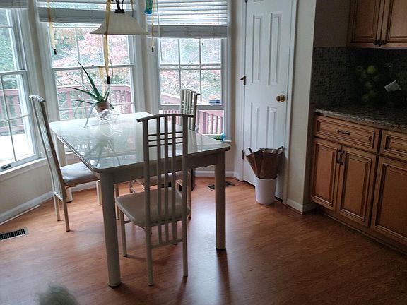 Gorgeous sun filled 4br townhouse in desirable Greenspring East.! Stylish updates include gleaming HW floors on the main and upper levels, 3 sided wood F/P enbelishes LR and Dr, eat in kitchen with bay window and updated cabinets, granite countertops. Walk out basement, fenced in backyard, Master suite has walk in closet, soaking tub and sep shower. New fridge, roof, deck and a/c-all from 2022. Sold as-is!