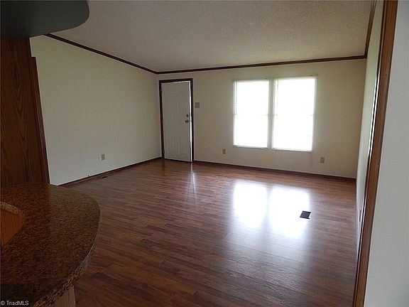 Both the heating of the home and the stove are both fueled by propane gas. The home has new laminate flooring and new counter tops in the kitchen. Nice level lot with mountain views. The 4.14 acre wooded lot is to the rear of the home. Great location with low county taxes but only about 15 minutes to Mt. Airy.
