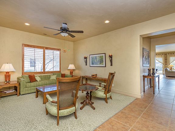 This spacious, original Sunbrook model home features 3 bedrooms, 3 full bathrooms and a custom office / library. There are beautiful walnut floors in the bedrooms, library and main living area with tile throughout the remainder. The kitchen is large with brand new appliances and one-of-a-kind tile backsplash, featuring correctly oriented surrounding mountain ranges. Custom plantation shutters are included on all windows. The custom all-walnut library is adjacent to the master bedroom and an ideal place to enjoy the sought after Sunbrook lifestyle of health, happiness and relaxation. Perched on a large lot on top of Canyon View Ridge the property boasts beautiful views from the two large patios. The lot features a variety of mature and nurtured native desert plants. Conveniently located in the heart of Saint George and minutes away from I-15, bike trails, hiking trails and world-renowned national parks are all within easy access. The house also comes fully furnished with details in the DOCUMENTS section.