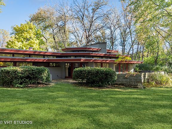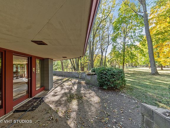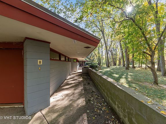 Welcome to Don Erickson's Marshall Residence. Originally thought to be the work of Erickson's business partner Dennis Stevens, the plans, located by the seller, revealed that Don Erickson was in fact the architect of this beautiful home. Set on a gorgeous 5-acre property, this organic modern ranch is set way back at the end of a winding driveway, offering exceptional privacy. Erickson smartly left plenty of land behind the home as well, so that there's ample space to enjoy the outdoor, or even to expand this fantastic home. Arranged in a linear fashion, the home features a spectacular great room, with three levels of ceiling height that rise above a massive modular block fireplace with a sunken hearth. At each ceiling level, clerestory windows offer natural light and views of the sky. As with the other rooms in the house, the living room features a tremendous amount of built-in furniture: A beautiful, built-in sofa wraps around much of the perimeter of the space, and is flanked by built-in end tables, with shelving above for books or artwork. Both bedrooms feature even more built-ins, with both rooms featuring built-in wardrobes, shelves and desks or workspaces, along with two-tiered ceilings with additional clerestory windows. The kitchen and laundry / utility room also feature tiered ceilings with clerestory windows, and the kitchen still features its original cabinetry. Both bathrooms feature original cabinetry, tile work and built-in lighting that was made by the craftsmen who built this 2,713 square foot home in 1960 / 1961. Throughout the home you'll enjoy what seems like acres of the original wood used to clad the walls, shelves and cabinetry, including the many cabinets lining the hallway to the bedrooms and the 2-car garage at the west end of the house. Floor to ceiling windows and sliders in most spaces invite in so much natural light, and blur the lines between the indoors and outdoors in true MCM fashion. This incredible home has been in the same family since 1973, and is now ready for the next stewards to enjoy the house and give it the love and appreciation it deserves. Just minutes from the Barrington Metra station and served by the highly rated Barrington school district, there is simply nothing else like this on the market in the Barrington area! The property is being sold "as-is" as part of an estate. Original plans are available to the lucky buyer who will call this home their own!