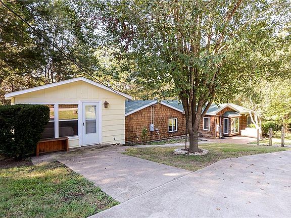 Lake Front adorable cabin/rustic feel with privacy plus the guest house for overflow & garages for all the lake toys, paved circle drive with gates, expansive covered deck space & screened porch. Remodeled kitchen, brand new roofs, HVAC & more. Feel at home walking through the door, a unique property you have to see to appreciate. 10x24 Boatslip in community dock just behind home, with a walking path or golf cart access, is available for additional funds. Listed sq footage doesn't include guest house