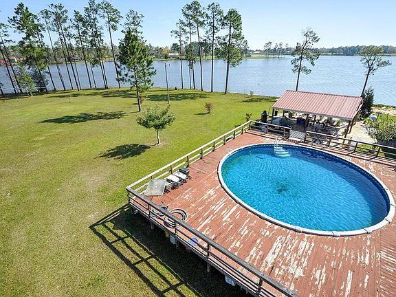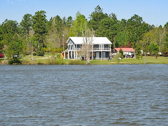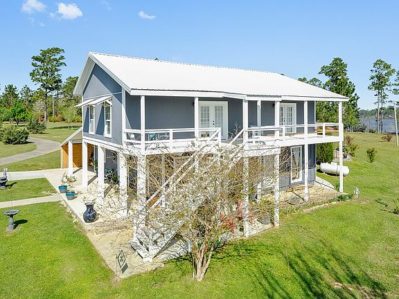 Fabulous Coastal Cottage style home, updated on 4.2 acre lot sits on 129 acre lake! 5 bed/3 full baths (2 mstrs-one upstairs and one down), wood like ceramic tile downstairs, open kitchen/living/dining high ceilings. Attached carport is 11x55 (room for a boat and car). 3 separate a/c, detached 24 x 24 covered pavilion with electricity and lights. Seller reserves right to take dining chandelier.