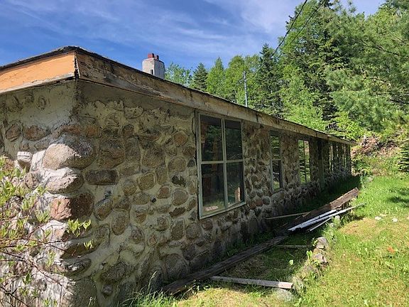 This property is worth a look. The building houses two units that are surrounded by a large open air type verandah with stone walls. The units each have stone fireplaces with wood stoves. Maybe a an Air B&B/Summer home. Definitely a unique construction. Need a handyman to do some TLC. Sale is subject to survey and subdivision approval. No water supply.