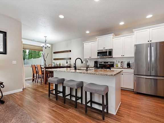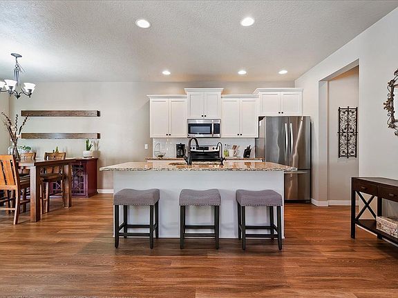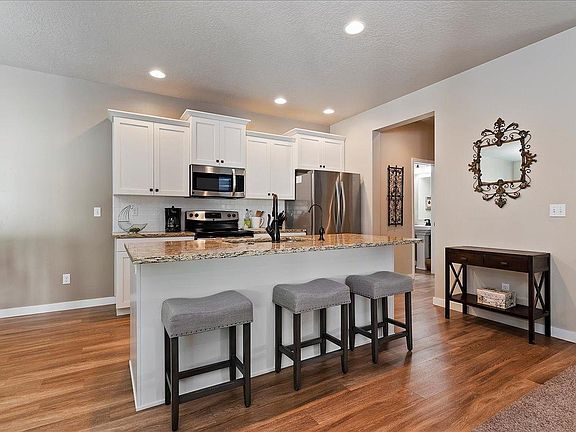 Looking for a perfect location, gorgeous home, and no mowing? This is the one! 4 beds, 2.5 baths, with over 1900 sqft. Large open concept, kitchen with custom white cabinetry and granite countertops, and dedicated dining room. Walk-in pantry with laminated appliance shelf with outlets for your small appliances. Upstairs you have the large primary suite with dual vanities and walk-in closet, and separated by a short hallway are the other 3 bedrooms and great laundry room with shelf and cabinetry. Second bath also has dual vanity. Nice covered patio facing north. Central air conditioning and two attached garage spaces. Owner pays HOA fees which covers ordinary care and maintenance for landscaping. Renter covers all utility costs. No smoking or pets Min. 12 month lease