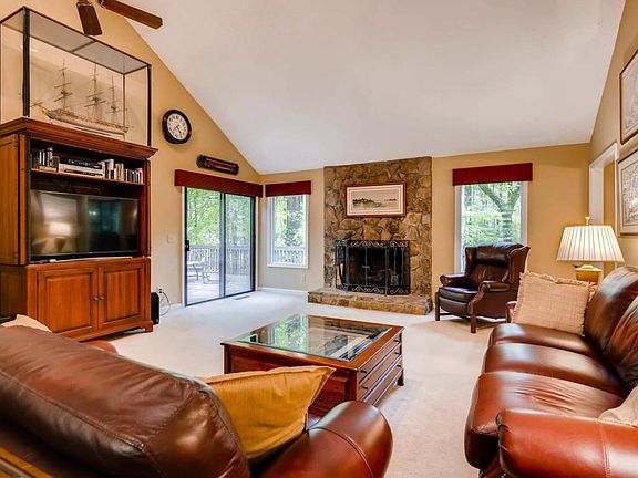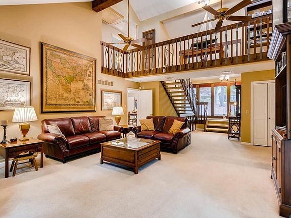 sought after Chimney Springs neighborhood, this home offers tons of space with the vaulted 2 story great room providing an open & airy feel with tons of natural light, crisp white kitchen with granite countertops & tile backsplash, master retreat on main level, finished basement features 2nd cozy fireplace in rec room, full bath, bedroom & sun room! Basement, had new flooring and paint in 2020. Main floor had LVP added in 2021.. The outdoor space to this home can't be beat - screened porch, patio & deck looks out onto huge fenced in yard with firepit & New roof November 2020.