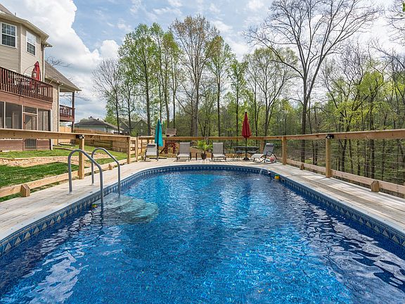 Gorgeous home sitting on 1.58 acres with a spectacular view and a pool! This custom home features an open concept living/kitchen floor plan with a view of the private pool and secluded/fenced backyard. There is tons of flex space to use for offices, playrooms, or extra bedrooms. The basement is finished with a 2 car garage, workshop, a large storage closet, mud room, and a spacious extra living space that leads right out to the pool. Kitchen and master bath also have updated tile and granite.