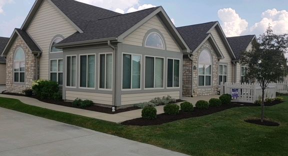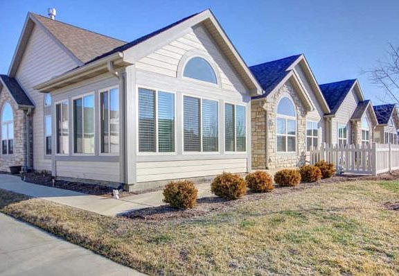 Condo Living at its Carefree Finest!! Modern and upscale newer condo for sale by original owner. No funky fixtures or loud paint colors—just a blank canvas to explore your own creativity! Beautifully landscaped. This home has the popular open concept floor plan with tons of natural light from large, surrounding Jeld-Wen Easy Tilt, Double Hung windows and cathedral ceilings with large half-moon windows throughout. This two (2) bedroom home boasts a spacious living room with a cozy corner gas fireplace, hidden electrical cabling option, dream kitchen with breakfast counter, and a private office and spacious four season room, both with French double doors. The large ceramic tile kitchen overlooks the great room for interactive entertaining and contains a large pantry, all stainless steel appliances, cherry wood cabinetry with under-lighting, and lots of counter space with plenty of outlets. The Master Bedroom is a spacious suite with dual vanities, privacy pocket door panel, and shower bench in Master Bathroom, as well as a deluxe Walk-In Closet with tons of space. Direct access to huge attic space and two-car garage from Kitchen and Laundry Room hallway. This community includes great neighbors and fun activities, an In-Ground Swimming Pool, Clubhouse with Billiards, Reading Room, Exercise Room, Full Kitchen, and Great Room for parties and gatherings. Monthly HOA Fee includes use of these amenities, exterior building maintenance, snow removal, lawn care and exterior landscaping, trash and recycling pickup, and common insurance. Rapidly growing retail and housing location!! Very close to mall and grocery shopping, restaurants, interstate, and bus service. Experience the easy lifestyle of condo living!