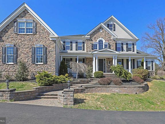 Your dream home awaits in the exclusive community of Spring Valley Estates. Nestled on over an acre of land, with its gorgeous tree lined streets, this home is situated for you to view the gorgeous Bucks County countryside while offering you a neighborhood with private estate living. This better than new Henley model boasts brand new Hardiplank siding and beautiful stone front with extensive professional landscaping. As you drive up the winding driveway to your own private parking pad a paver walkway leads you to the grand entrance. A lovely front porch welcomes you and leads you into the homes fabulous two story foyer. As you enter you will notice the dual grand iron baluster staircase, exquisite woodwork, and elegant lighting. Dining room and living room flank each side of the foyer with gleaming hardwood floors throughout. The hall foyer leads you to the great room with a soaring high coiffured ceiling with wood beams, hardwired surround sound, unique ceiling fan, wall of windows, and floor to ceiling stone wood burning fireplace. This room is the perfect setting to relax and enjoy your family and friends with the convenience of a back staircase to lead you upstairs and easy access to your gourmet kitchen. The kitchen is a chef~s dream with eat in dining area, high end stainless steel appliances including a Wolf range and oven, paneled subzero refrigerator, 2nd oven and an additional convection/microwave oven, granite counter tops, custom cabinets, large pantry, huge island, and a butler~s pantry with a subzero wine refrigerator. Just off the kitchen is a brightly lit sunroom with a stone gas fireplace and access to your outdoor deck. Also on the first floor is an oversized mud and laundry rooms, an office, and a powder room. To complete the first floor there is a exquisite 5th bedroom with full bathroom that can be used as a 2nd master, in-law, or au pair suite. Upstairs you will find 3 more nicely sized bedrooms all equipped with wall mounted flat screen TV~s and their own full bath. The master bedroom with a tray ceiling is amazing with a sitting area as you enter and then two extra-large custom walk-in closets. You will love the en-suite bathroom with off-white colored cabinets with dual vanities surrounding a Jacuzzi soaking tub, 2 separate private water closets, and frameless shower stall with dual showerheads. Also in the master suite is a bonus room that can be used as a showcase closet, an exercise room, office/ craft or additional sitting room. Also, included in this home is your walk out basement with 10 feet ceilings and plumbing for a bathroom, whole house generator, 3 car garage, outdoor water sprinkler system, and landscape lighting. Lastly is the perfect backyard with a unique layout that provides a natural platform and plenty of privacy. The location for the this home is ideal given its proximity to Main Street in Doylestown, Peddler~s Village, New Hope, and easy access to major routes to Philly, NJ, and NYC. This is one home you don~t want to miss.~