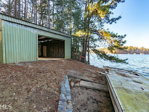 Custom designed Lake Lanier home with large boat dock on peninsula lot.