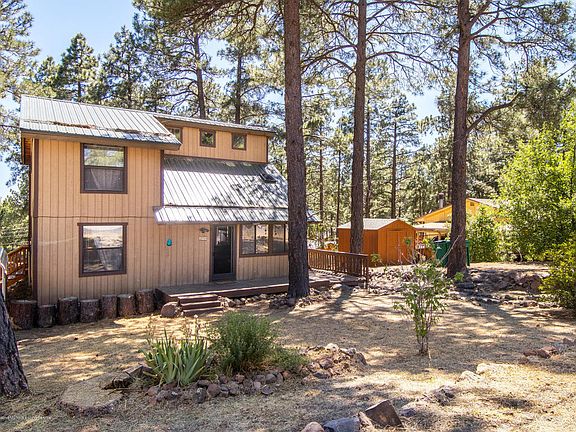 Take in the cool mountain air and lush pine tree views from this gorgeous home on a quiet street in Kachina Village. Admire the soaring ceilings throughout, modern kitchen with solid surface counters and tile backsplash with all stainless appliances. Beautiful fixtures in kitchen and 2 full baths. Oak floors in kitchen, living and dining rooms. Great layout with bedroom and full bath on first floor and large master with full bath on upper level. Large sunny loft with closet and Juliet balcony provides space for extra bedroom or home office. Tons of storage and nooks including partial basement. First floor laundry/mud room with entrance door. Large back deck for stargazing and entertaining and incredible hiking just outside your front door! All appliances included.New hot water heater 11/17